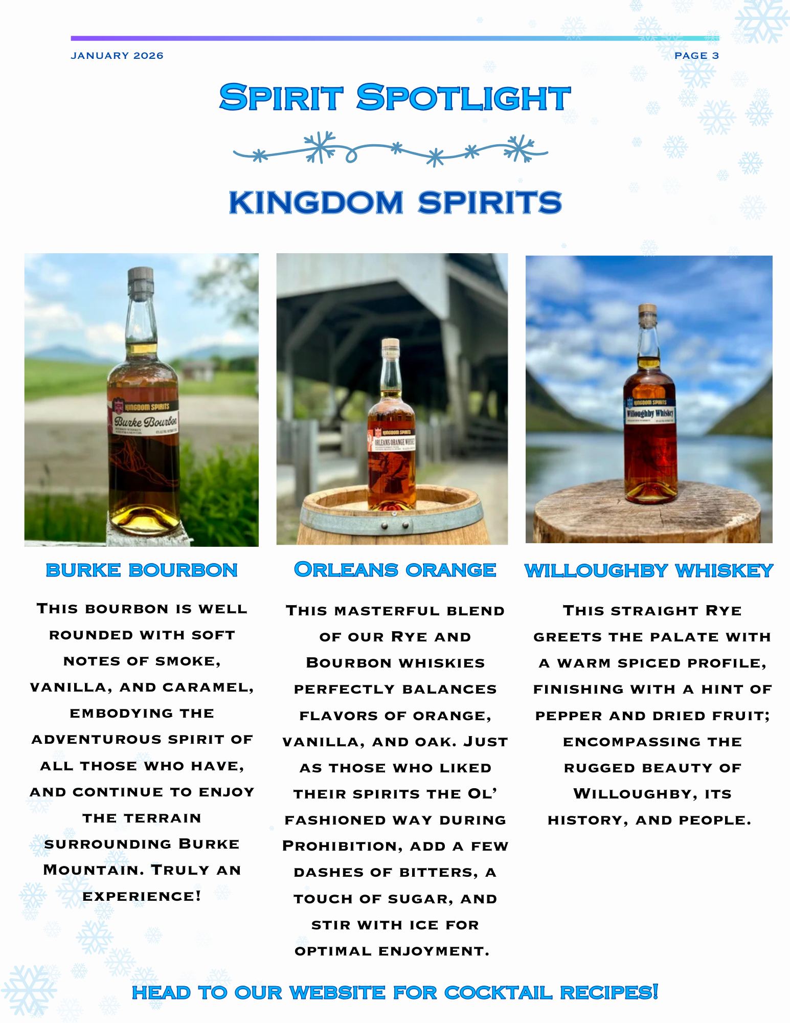 Monthly Newsletter Welcome What's Happening Spirit Spotlight Event Services Looking Ahead 2025 Rum Runner Program